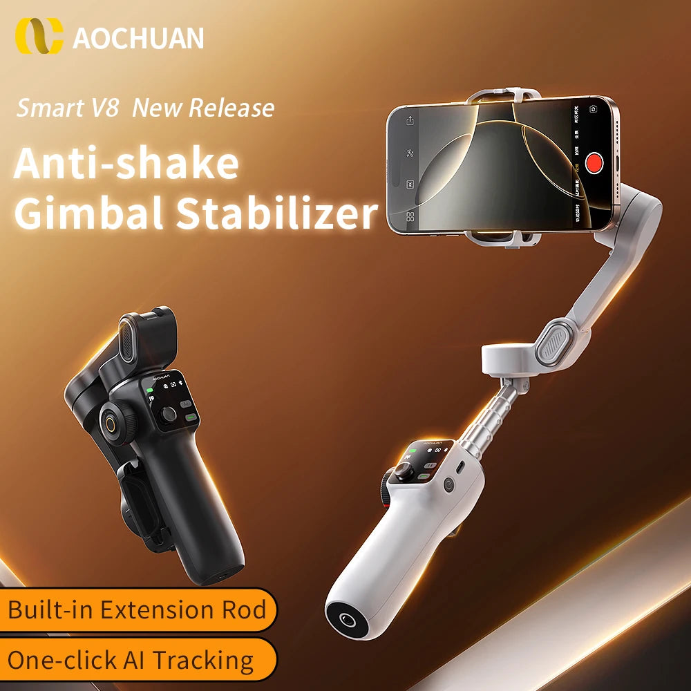 Capture cinematic footage with the Aochuan Smart V8 3-Axis Gimbal Stabilizer, exclusively at Basketol. This advanced smartphone gimbal features a built-in retractable extension rod, HD full-screen display, and intelligent face tracking—making it the ultimate tool for vloggers, content creators, and mobile filmmakers. With 3-axis precision stabilization, gesture control, six shooting modes, and up to 10 hours of battery life, the Smart V8 transforms your smartphone into a professional filmmaking powerhouse.