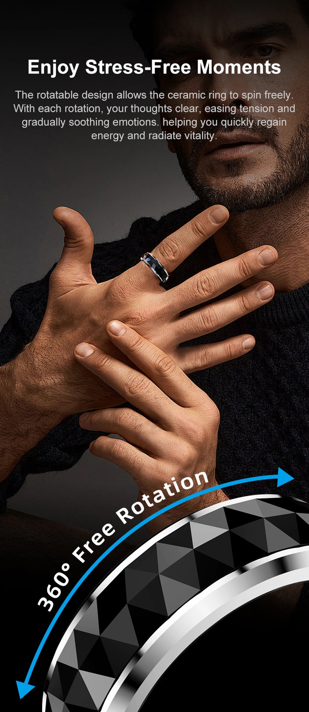 A: Yes! The rotating mechanism is precision-engineered with high-quality ceramic bearings designed for thousands of spins. The ceramic construction is incredibly durable and scratch-resistant. The smooth rotation won't degrade over time, and the mechanism is sealed to prevent dust or moisture from affecting performance. It's built to last for years of daily fidgeting.