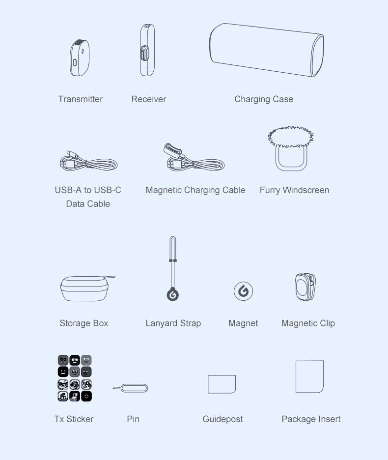 A: The Cube-S includes clip-on attachments that let you secure the transmitter to clothing, collars, pockets, or jackets. This hands-free design allows natural movement while recording, perfect for interviews, vlogs, and live streaming.