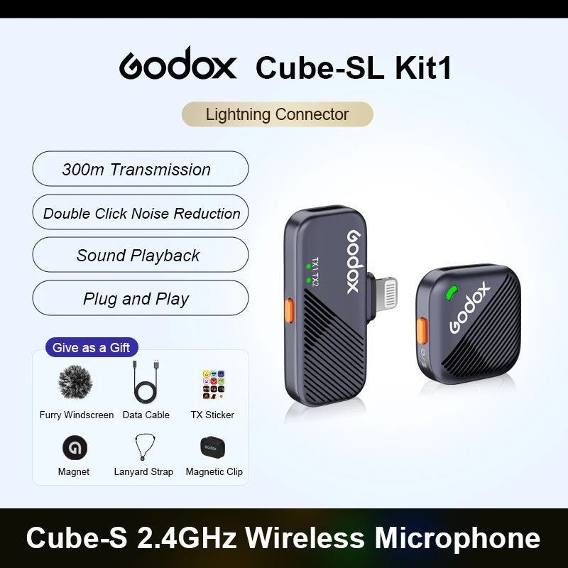 Godox Cube-S Wireless Lavalier Mic 2.4GHz Compact Dual TX Omnidirectional Plug-and-Play | Basketol