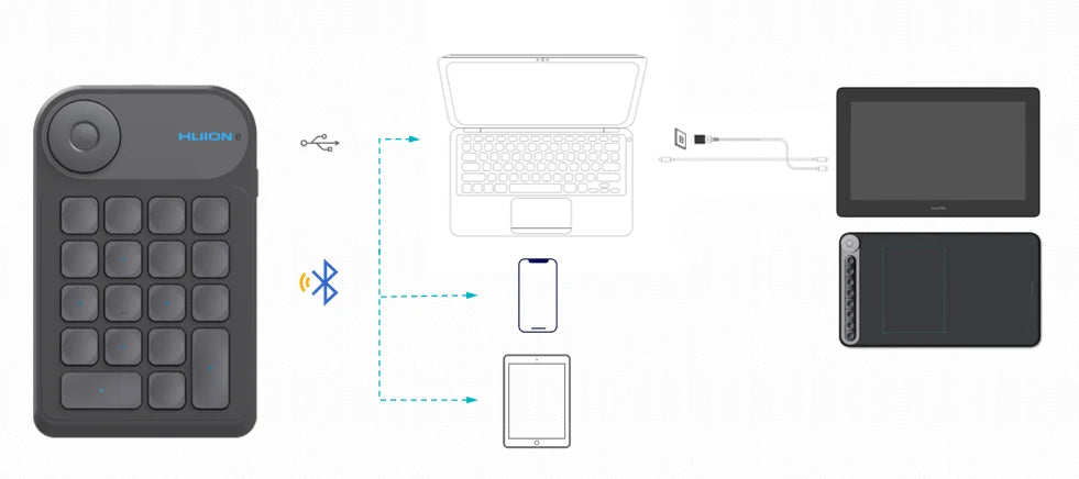 Supercharge your creative workflow with the HUION Keydial Mini, exclusively at Basketol. This compact wireless shortcut keyboard is designed specifically for digital artists, graphic designers, video editors, and creative professionals. With 18 fully programmable keys, a precision dial controller, and Bluetooth 5.0 connectivity, it puts powerful customization at your fingertips—literally streamlining your creative process and boosting productivity.