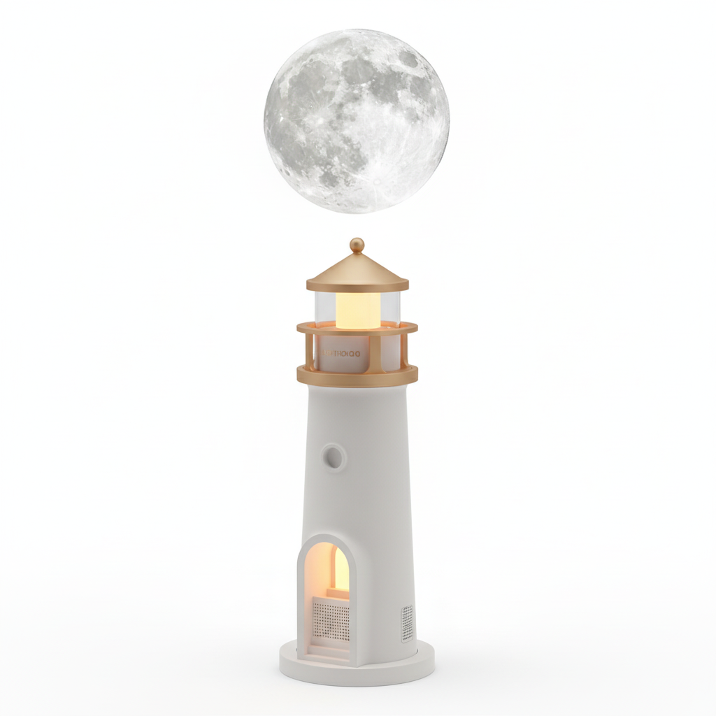 The Moon Lighthouse Night Light is a multifunctional LED lamp that combines a Bluetooth speaker, moonlight projection, and motion-sensing technology. Designed to create a relaxing ambiance, it is ideal for bedrooms, living rooms, nurseries, and holiday decorations.