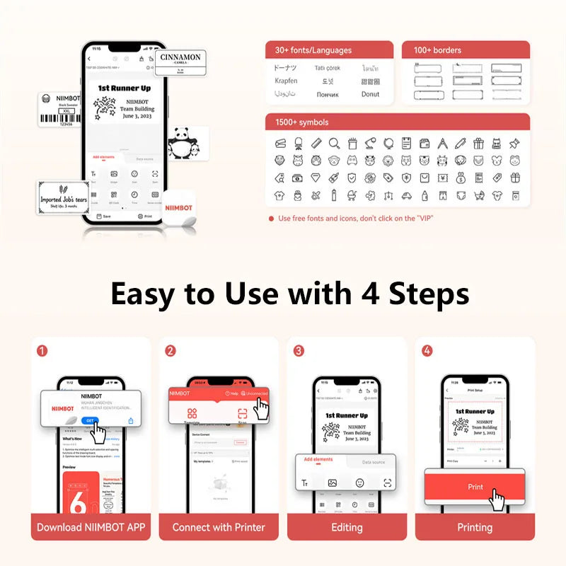 ✅ Bluetooth Connectivity – Wireless printing from smartphones via the NIIMBOT app (iOS & Android)