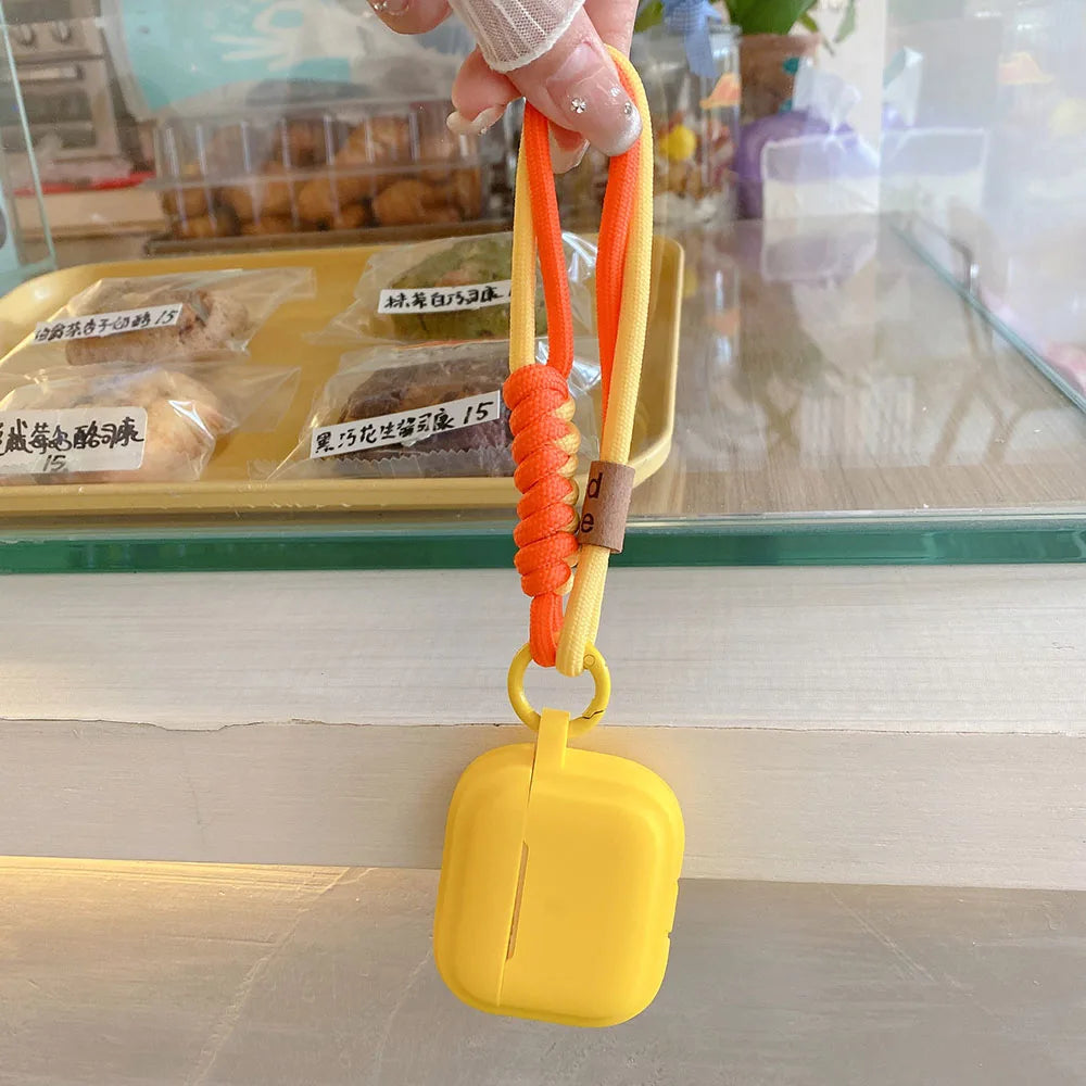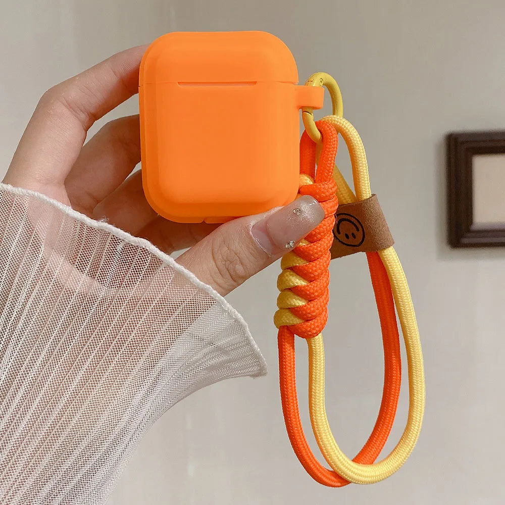 Sleek silicone shell with a cheerful smiley face strap – adds personality while keeping your earbuds safe.