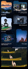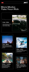 Includes time-lapse, loop recording, slow motion, pre-record, video+photo, night mode, and car dashcam functionality.