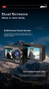 Front and rear screens provide easy control and real-time framing—perfect for selfies, vlogging, and dynamic action shots.