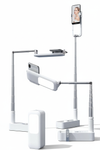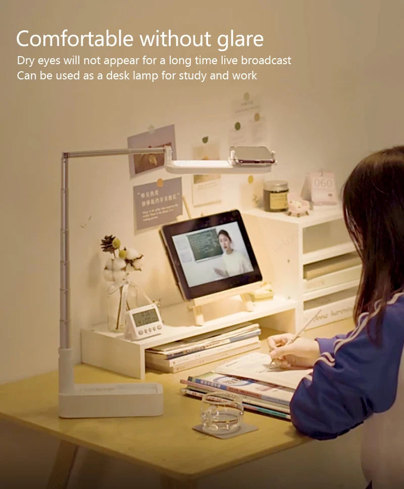 A: Yes! The dual-purpose design is genuinely versatile. As a phone holder, it securely grips your device while providing professional lighting for selfies, videos, or calls. Remove your phone, and it becomes a fully functional desk lamp with 3 color temperatures and 7 brightness levels—perfect for reading, working, or ambient lighting. The 360° rotation lets you direct light exactly where needed. The 1300mm extension means you can position it high for overhead lighting or low for task lighting. It's like having a ring light, phone stand, and desk lamp in one device.