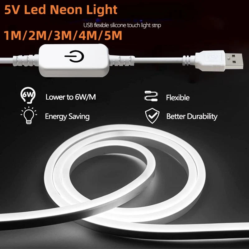USB Neon LED Strip Lights 320 LEDs/M COB IP67 Waterproof Flexible 1M-5M 3 Color Temps DC5V Home Decor | Basketol