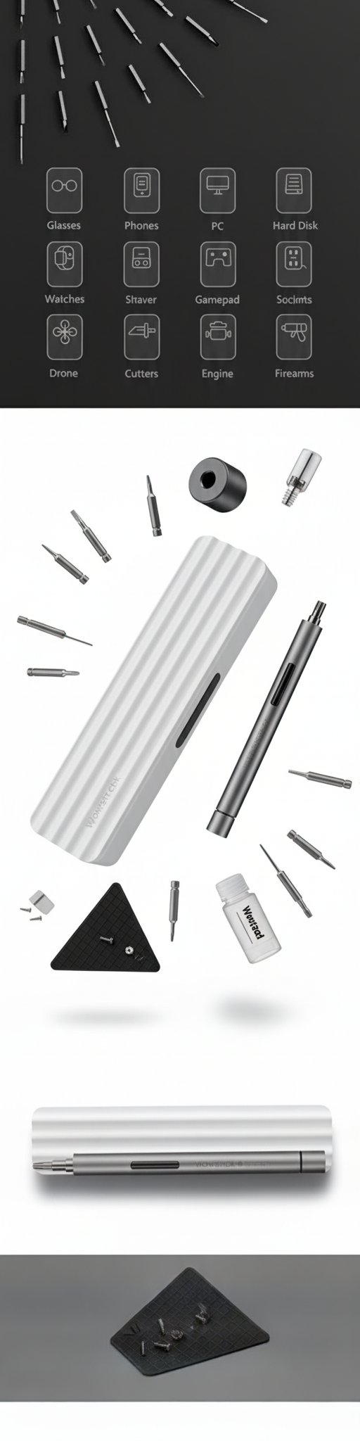 Experience professional-grade precision with the Wowstick 1F+ Pro Electric Screwdriver Kit. This 64-in-1 comprehensive toolkit combines electric power, precision engineering, and cordless convenience to handle any repair or assembly task with ease. Perfect for electronics, smartphones, laptops, and DIY projects.